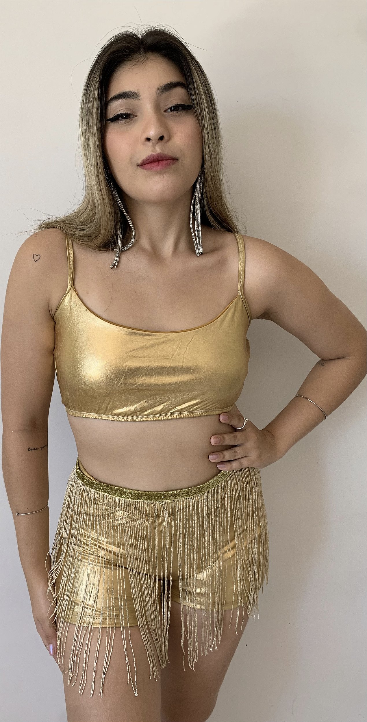 Conjunto confeccionado em malha metalizada, composto pelo nosso top faixa queridíssimo e o short que proporciona conforto e belez para você!