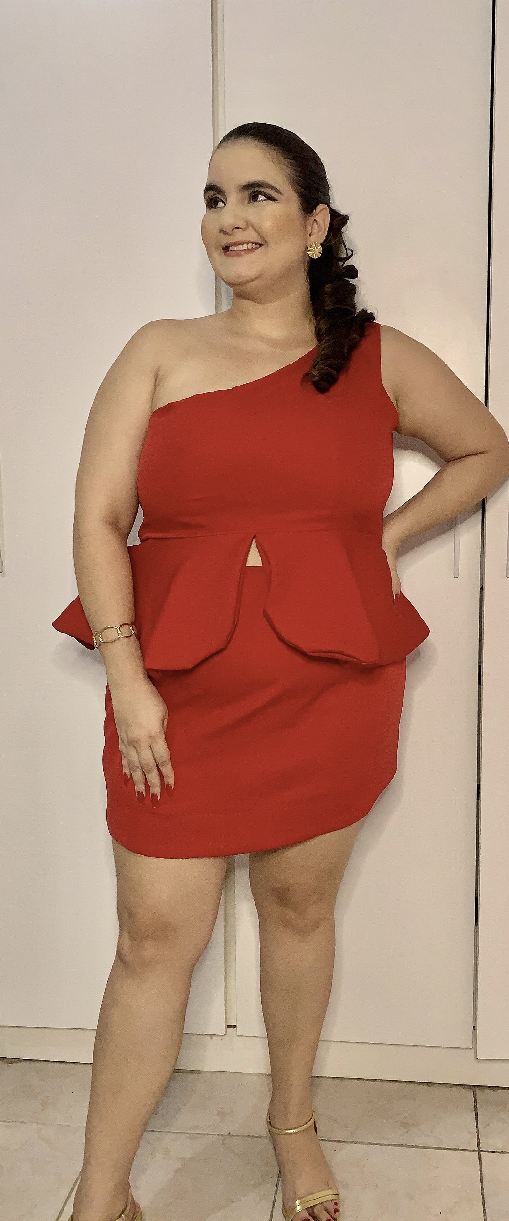 A peplum que é um charme só, em alfaiataria uni a tendência de um ombro com o corte assimétrico.